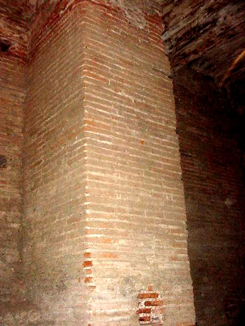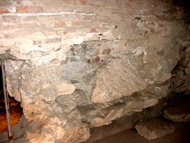 In this picture of the base of the Roman wall in Toulouse, we can see the miscellaneous rubble, such as the apparent column decoration, that was used to create the wall hastily.