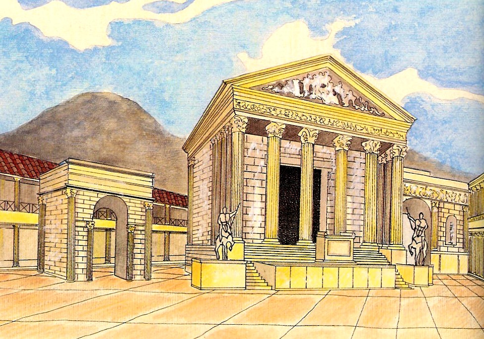Right: Imaginary reconstruction of the Temple of Jove in Pompeii.